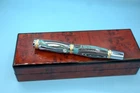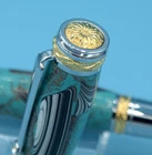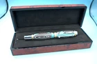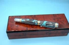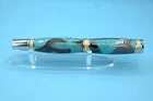Majestic Rollerball Pen in Chrome/22kt Gold-Plated Finish +Turqoise and Fordite Large and powerful elegance, a truly extraordinary pen. This magnificent Rollerball Pen will delight your recipient with a handmade pen that will exceed even the most discriminating collector's expectations! The Majestic Pen includes many remarkable features including A chrome-plated clip that includes a sparkling Swarovski clear crystal. All exposed accent rings, bands, and caps include elegant custom hand-carved 3-dimensional designs. Components are cast, polished then plated with elegant 22K gold. Its regal profile is accented with brilliant chrome on all components and has a flawless fit and finish. The rollerball assembly includes a Chrome-plated pen nib with a premium Schmidt steel cartridge refill with a ceramic point; This writing instrument is complimented with superb balance, superior writing characteristics, and an overall stylish, polished & elegant appearance. This hybrid pen body is real Fordite combined with black epoxy resin. A very dramatic and awesome combo! Fordite is, by definition, layers of dry paint. Fordite raw material (also known as Detroit or Motor City agate) is incredibly rare and very expensive! This Fordite is a buildup of old automotive paint that has been baked numerous times and hardened sufficiently to be cut and polished. It take a lot of patience to make these pens, but the result is an impressive and very unique pen. Features: Free Same Day Shipping 22kt Gold Accent Rings Unique Honeycomb barrels Pen Length 6 Inches, Weight 3.2 oz High-End Royal Presentation Style Gift Case as shown 100% Customer Satisfaction Guaranteed Includes a premium Schmidt steel cartridge refill with a ceramic point Check out the other pens like this: Majestic Pen Category Check out the other items in my eBay Store: Gary's Pen Shop
