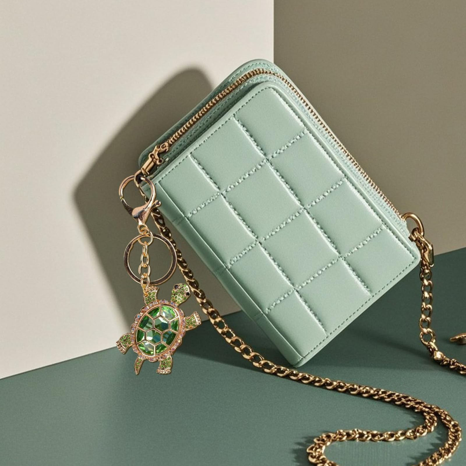 turtle keychain heart keychain bling bag charm for handbags cute keychains for car keys accessories funny purse charms good luck gifts for women sea turtle decor turtle charms animal design key holder fashion jewelry travel turtle crystal keychain Turtle keychain:It features a gold lobster clasp with a bling travel turtle pendant design, whether dangling from keys, backpacks or luggage. its compact silhouette blends functionality with minimalist charm for versatile everyday styling. Cute Keychain:Sea turtle decor features a playful yet sophisticated aesthetic to brighten your favorite accessories. the understated detailing transitions seamlessly from casual errands to office outings, adding whimsy without overpowering your personal style. Purse & Bag Charms:This funny turtle charms deliver subtle personality to handbags and totes with their lightweight construction. mix and match multiple charms to create custom looks that complement both crossbody bags and evening clutches for all-day versatility. Good Luck Gifts:This travel turtle keychain makes thoughtful gifts for birthdays, holidays or "just because" moments. Perfect for graduations, housewarming parties or anniversary surprises, these accessories add sentimental value to practical items loved ones use daily. Car Keychain Accessories: it combines practicality with streamlined design – securely organize vehicle keys while maintaining quick access.