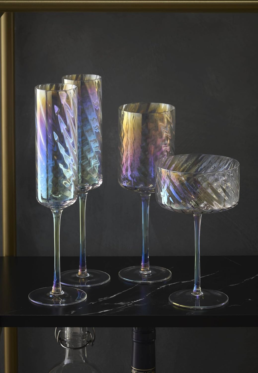 $ 15.84Pier 1 Amber Iredescent Wine Glasses W/ Clear Stem Blown Glass Set 4