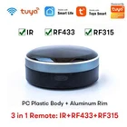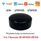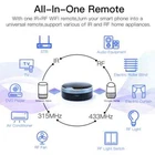 Application Scope of The Product: All in One Smart Remote Control ● IR Control Devices: TV, STB(Set-Top-Box), TV Box, Air Conditioner, Fan, Light, Audio, Projector, DVD, Camera, Heater, Purifier, etc ● RF(433/315MHz) Control Devices: Curtains, Roller Shutters, Window Pusher, Hanger, Projection Screen, Garage Door, Retractable Door, RF Switch, etc. ※ Compatible with RF 433/315MHz fixed code and learning code, not compatible with rolling code and encryption code. Product Parameter: * Product Type: IR+RF Remote Control * Model Number: CS-SSRC-IRC * Input: DC 5V/1A * Standby Power Consumption: <0.85W * Infrared Frequency: 38KHz * Radio Frequency: 433/315MHz * IR Control Range: 8m * RF Control Range: 20m * Internet Connection: Wi-Fi IEEE 802.11 b/g/n 2.4GHz * Support OS: Android 4.4/iOS 9.0 or later * App: Tuya Smart / Smart Life * Working Temperature: -20~60℃ * Net Weight: Approx. 65g * Material: PC+Aluminum * Dimensions: 80*80*40mm Package Contents: Smart Remote Control x1 USB Cable x1 User Manual x1 Screws Kit x1 Massive IR/RF Code Database Support 4000+ brands, 50000+ IR/RF Code on cloud, supported devices library is constantly being updated every week. App Remote Control Remote Control your home appliances by using "Tuya Smart" or "Smart Life" App. For example, turn on your air conditioner, no matter where you are. -Support 99% air conditioner in the market, automatic cloud match, easy to set up. -Turn on AC in advance, enjoying the comfortable temperature once you get home. Third-Party Voice Control: Works with Amazon Alexa, Google Assistant and Siri(iOS 12.0 or later) By connecting App to Amazon Echo, Google Home, you are able to voice control your home appliances. For example: -Alexa, turn on the TV; -OK Google, set air conditioning temperature to 25 degrees. Timing and Automatic Triggering Never miss one second of excellent match -Stay up late for the match,but always oversleep? -The smart remote control helps you turn on TV at right time and right channel. Enjoy your match! DIY: IR/RF Learning Function -If your device type or brand is not in the list or no match in database after all attempts, you may use "DIY" function to learn(copy) the IR/RF signal from the original remote control. Wide IR/RF Remote Control Range Control the IR home appliances within 8m in one room, control the RF home appliances within 20m, can be used in most of living rooms and bedrooms. * Friendly Reminder: IR signal can't pass through wall and most of obstacles, so please keep the smart remote control and your devices in the same room, their linear distance should be no more than 8m, and not blocked by other objects. Share the smart remote control with your family Control the IR/RF home appliances with your family together. Have fun to enjoy smart life. Scenario and Automation in App A scenario(Tap-to-Run) consists of 1 or more actions. You may control multiple devices with one tap; By creating "Automation" in App and interworking with other Tuya smart home devices, the universal remote control is able to execute actions automatically according to conditions, such as device status, weather and time. Please note: The door sensor,temperature sensor and motion sensor are not included in the package. Product Parameter 360° Petal Shape IR Emitting Lamp Multi-directional launch, guarantee that every order will be served quickly and accurately Real Shot How to Add Device in App Confirm the indicator is blinking, enable cellphone Wi-Fi(2.4GHz) and Bluetooth, open App and wait for several seconds, App will pop-up a dialog box, then tap "Add" icon to finish. If the dialog box doesn't show up, please tap "+(Add Device)" at the top right corner, then tap "Add". How to Enable Siri Voice Control →Open Tuya Smart App, tap "+"(Create Scene) at the top right corner, choose "Tap-to-Run" → Add task(choose "Run the device") → Choose the device that you want to control → Select Function and then tap "Next" → tap "Save", then a "Tap-to-Run" is created successfully. Then tap "Add to Siri", in the "Siri Shortcut", choose the scene(Tap-To-Run) to add it. Next input a custom phrase and tap "Add to Siri", then setup is done. Every time when you say this phrase to Siri, Siri will tell Tuya Smart App to run this shortcut to control the device.
