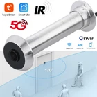 Tuya Smart 5G WiFi Door Viewer Peep Hole Camera Motion Detect Recording Camera Description: Support Tuya Smart APP. It works with other smart devices in your home that can support Tuya Smart APP. Work With Google and Alexa With TUYA APP, no matter where you are, you can remotely access the security camera to see live streaming and stay connected.At the same time, you can also use this camera to connect Google Assistant and Alexa to enjoy the convenience of smart home. Support Two-way voice Two-way voice allows you to talk to your family at all times Sensitive Motion Detection Precise Motion Detection Is The Camera’S Safety Hallmark.Any Slightest Movements Are Accurately Picked Up And Alert You Immediately. Support TF Card Storage & Cloud Storage The TF card slot allows you to insert a 128GB TF card, which means you can save images and videos for later viewing. Meanwhile, the large memory allows you to record everything you want without missing a moment. Allows you to watch saved surveillance video on different devices. Specification: Material: metal Wifi: 2.4G wifi & 5G WIFI connect directly Pixels: 2MP System structure:Embedded RTOS,dual-core 32bit DSP,pure hard compression ,watch dog Sensor:2.0MP:1/3" CMOS image sensor /ANKAI DSP Video compression:H.264,support dual stream,AVI;0.1M~6Mpbs variable;1~30f/s variable Minimum illumination:Color 0.1Lux; B/W 0.01Lux Image output:2MP Main stream:1920*1080(25fps), Noise reduction:Support 2D/3D Storage:Via PC/Mobile Phone/NVR With HDD Mobile monitoring:Support multiple mobile monitoring(iOS,Android) Power:Standard DC5V Installation dimensions: :1.59mm Working temperature: -10℃~+65℃(℃) Alarm function: support Lens Type: Fisheye Lens Lens angle of view: 170° Voice intercom: support Motion Detection: Yes Effective distance: within 10 meters Support: onvif, P2P, Alexa, Google Video Compression Format: H.264 Storage: Support Up to 128GB TF Card (Not Included) Video format: AVI APP function: real-time viewing, online playback, complete various settings APP: Tuya Smart /smart life Use environment: indoor door hole, villa door hole, industrial endoscope ...... 2MP FHD real-time monitoring:Support Windows, Android, IOS. Power: Standard DC5V Camera operating current 480mA Package Included:(O ption Plug) 1 x Door Camera 1 x User Manual 1 x USB Charging cable 1 x Adapter