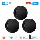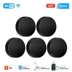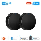Tuya IR Remote Control Smart WiFi Universal Infrared Tuya Smart Home Controller For TV DVD AUD AC Works With Alexa Google Home Description: With this Universal IR Remote Control, you may use your smart phone to control home appliances, such as STB(Set-Top-Box), TV Box, TV, Air Conditioner, Fan, DVD, etc. Compatible with most of brands, for details, please refer to the supported brand list in App. Besides, it has LEARNING FUNCTON, allows you to copy the key function of original remote control to App. Note: Not compatible with the home appliances which use RF or BLUETOOTH remote control. 【1.Massive IR Code Database】 Support 4000 brands, 50000 IR Code on cloud, supported devices library is constantly being updated by the cloud. 【2. App Remote Control】 Remote Control your home appliances by using “Tuya Smart” App in your smart phone anywhere anytime. For example: Switch on home A/C in advance, enjoying the comfortable temperature once you get home. 【3. Easy to install and add to app】 Once you plug the cable line into the device, the device starts to start, and then select the app's "auto scan" function to find device. The whole process takes only a few minutes. 【4. Voice Control】 By connecting Intelligent speaker, such as Amazon Alexa, Google Home, you are able to control your home appliances by voice. For example: Alexa, turn on TV; OK Google, set air conditioning temperature to 25 degrees. 【5. Scenario and Automation in App】 A scenario consists of 1 or more actions. By creating an “Scenario”, you may control multiple devices with one tap; By adding an “Automation” and interworking with other smart home devices, Wi-Fi remote control is able to execute actions automatically according to conditions, such as device status, weather and time. 【6. Timer and Automatic Trigger】 According to your living habits, set time switches for your home appliances, such as turning on/off the air conditioner at regular intervals. 【7. DIY】 Customizing buttons in the Tuya Smart App if your home appliances brand is not in the list or not supported. 【8. Third-Party Control】 Works with Amazon Alexa, Google Assistant, Siri(iOS 12.0 or later), Tmall Genie, Tecent Xiaowei, DingDong, Rokid, DuerOS, etc. Specifications: Product model: Power input: DC 5V/1A Standby power consumption: <0.5W Working temperature: 0~50℃ (32~122℉ Working humidity: <85% RH Infrared frequency: 38K Infrared distance: <8m (affected by the environment) Connection method: 2.4GHz 802.11b/g/n Product size: 63*63*23 mm Package Included: 1*Universal Remote Control 1*USB cable 1*Instruction