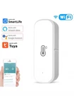 Tuya /WiFi Smart Temperature And Humidity Sensor Battery Powered Smart Home Security Work With Alexa Home Description: Material : ABS Size: 70*24*19mm Product Weight: 30g Battery:LR03-1.5V/AAA*2 -Fi frequency: 2.4GHZ IEEE 802.11 b/g/n Temperature Measure Range: -20°C ~ 60°C Humidity Measure Range: 0% RH ~ 100%RH Temperature Measure Accuracy: ±1°C Humidity Measure Accuracy: ±5%RH Specifications: 【Intelligent Linkage】 When the ambient environment change, you can do intelligent linkage. For example, the air conditioner will be and turn to specified temperature automatically when the room temperature surpass 28℃. And the humidifier will spray when the humidity is lower than 20% RH. 【Share devices】 You can share your added devices with your family members, so they can also monitor the ambient environment. 【Temperature Unit Selection in APP】 You can choose ℃ or ℉ as the temperature unit through app. 【 Third-party Voice Control】 Works with amazon alexa, assistant. 【Low battery alarm】 The battery level can be monitored. 【Temperature and humidity changes.】 Temperature and humidity change curve, historical data. 【Wall-mounted, easy to install】 Package Included: 1 set * (1 temperature and humidity, 1 instruction manual, stickers)