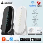 Tuya ZigBee Wireless Smart Switch 4 Gang Wireless Remote Control Touch Glass Panel Smart Home Suitable For Mulity RF433 Deveics Description: RF433 Switch: Modulation method: ASK Transmission frequency: 433,92 MHz Encoding method: Learning code EV 1527 Product size (per piece): 11.8 * 4.5cm Remote control battery: Cr2032 battery (including battery) Transmission distance: 30-50m (in open areas) Working voltage: DC 12V/27 ZigBee Switch: Battery: CR2032 battery (battery not included) Fluorescent: support Type: tuya zigbee Panel material: 2.5D tempered glass Remote control size:118*45*13.5mm Stand size: 62.5 * 50 * 23.2mm Specification: Features: RF433 Switch: DIY: The combination of remote control and wireless switch makes it more convenient and reasonable, with simple pairing and easy operation. It can turn various devices in the home into wireless remote control devices 2.5D high-definition tempered glass: In order to have a better feel, we have adopted higher cost curved tempered glass, which is more high-end. Fluorescent Function: The button will emit a faint light at night, indicating the position of each button. The faint light will not disturb the rest of family members Two fixation methods: It can be placed on the desktop freely or fixed to the wall with the built-in screws. Suitable for various application scenarios Long battery life: According to theoretical calculations, the CR2032 battery can be used for about 3 months (depending on the frequency of use) Control distance: 30~100M long distance (in open areas) Angle Adjustment: The bracket can be adjusted from 0 to 100 °, suitable for your optimal forehead angle 433MHz: Learning code (1527), with a transmission distance of 30-50m (in open spaces), brings you a new remote control experience and more convenience to your daily life. RF Pairing: Supports remote wireless control of your garage doors, electronic doors, appliances, and other remote control devices. (Only products with the same RF frequency are supported) Compact and Convenient: With a lightweight and compact design, the password key is very convenient for you to carry when going out. ZigBee Switch: 【Support zigbee wifi products】By APP setting, you can control zigbee or wifi products, including smart sockets, smart switches, smart bulbs, door magnets, temperature and humidity, etc. 【Three types of operation】Each button can be set to click, double click, long press function. 【Support a variety of function settings】Take the light bulb for example: you can set on or off, you can also set to adjust the brightness, you can also set to adjust the color. More functional operation, you can go to the APP settings 【2.5D HD Tempered Glass】 For better feel, we use the more expensive curved tempered glass, more high-end. 【Fluorescent function】The button will emit a faint bright light at night to indicate the location of each button, while the faint bright light will not disturb the rest of the family 【 Two fixing methods】Can be placed on the desktop at will or fixed on the wall using the screws that come with it. Suitable for various application scenarios 【Long battery life] using CR2032 batteries, after theoretical calculations can be used for about 3 months (specific and frequency of use has a relationship) 【Lanyard hole design】In order to prevent the remote control from being lost, it can be used with our Bluetooth anti-loss device to find the remote control more quickly (note that the anti-loss device needs to be purchased separately) 【Angle adjustment】The bracket can be adjusted from 0-100° to suit your best angle 【Share function】 share with family to control together 【Group function】 can close or open the group of devices together, more convenient Package Included: 1 set * (1 switch, 1 stand, 2 screws, 2 spiral tubes)