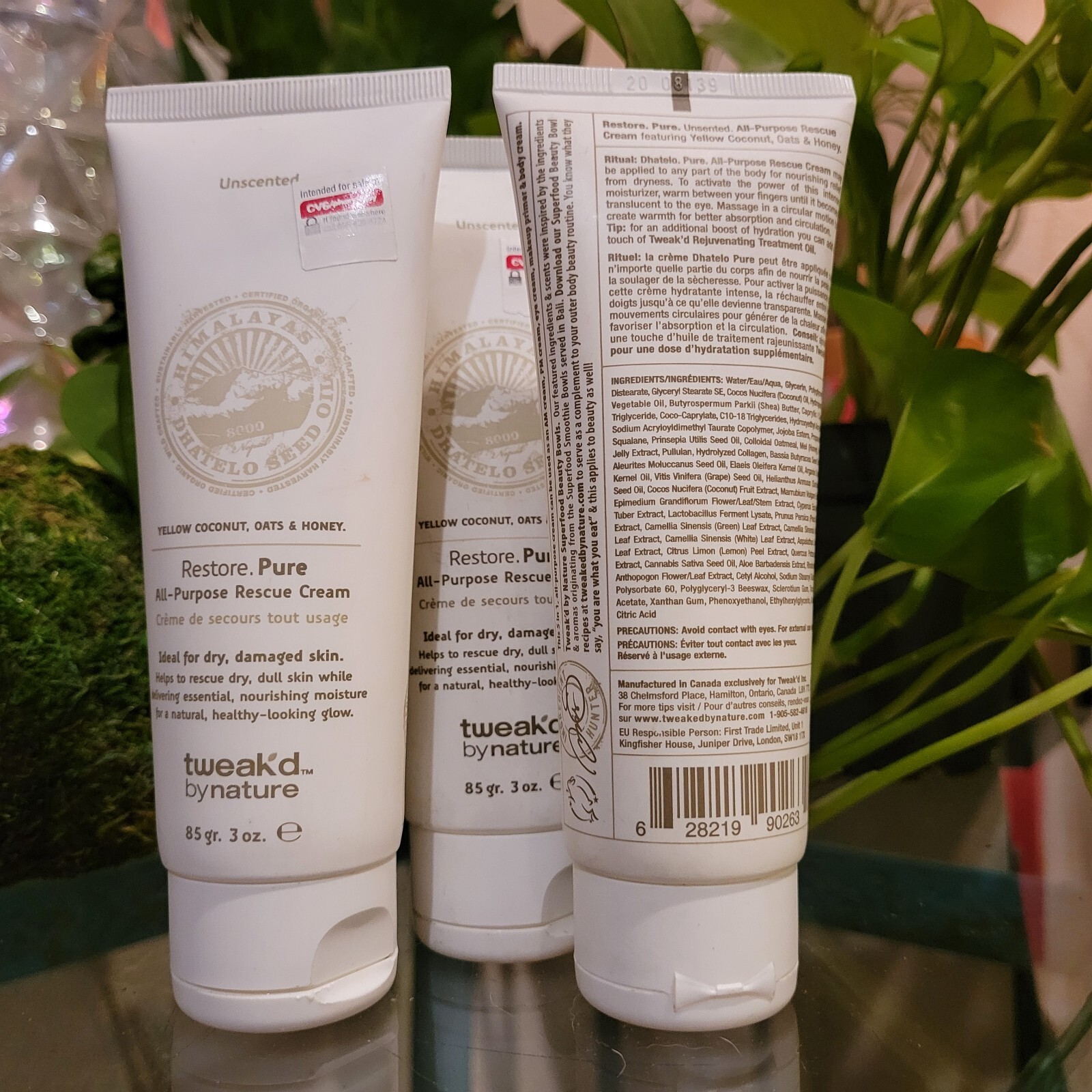 3 PACK Tweak-d By Nature Restore Pure All-Purpose Rescue Cream Unscented 3oz. Description From Tweak'd by Nature, Dhatelo Restore Pure All-Purpose Rescue Cream is formulated with Dhatelo seed oil and essential fatty acids. It's whipped to an airy perfection to deliver hydration to dry skin. Helps skin look refreshed and gorgeous.How do I use it: To be applied to any part of the body for nourishing moisture. Warm between your fingers until it becomes translucent to the eye. Massage in a circular motion to create warmth. Tip: for additional hydration you can add a touch of Tweak'd by Nature's Rejuvenating Treatment Oil (not included).