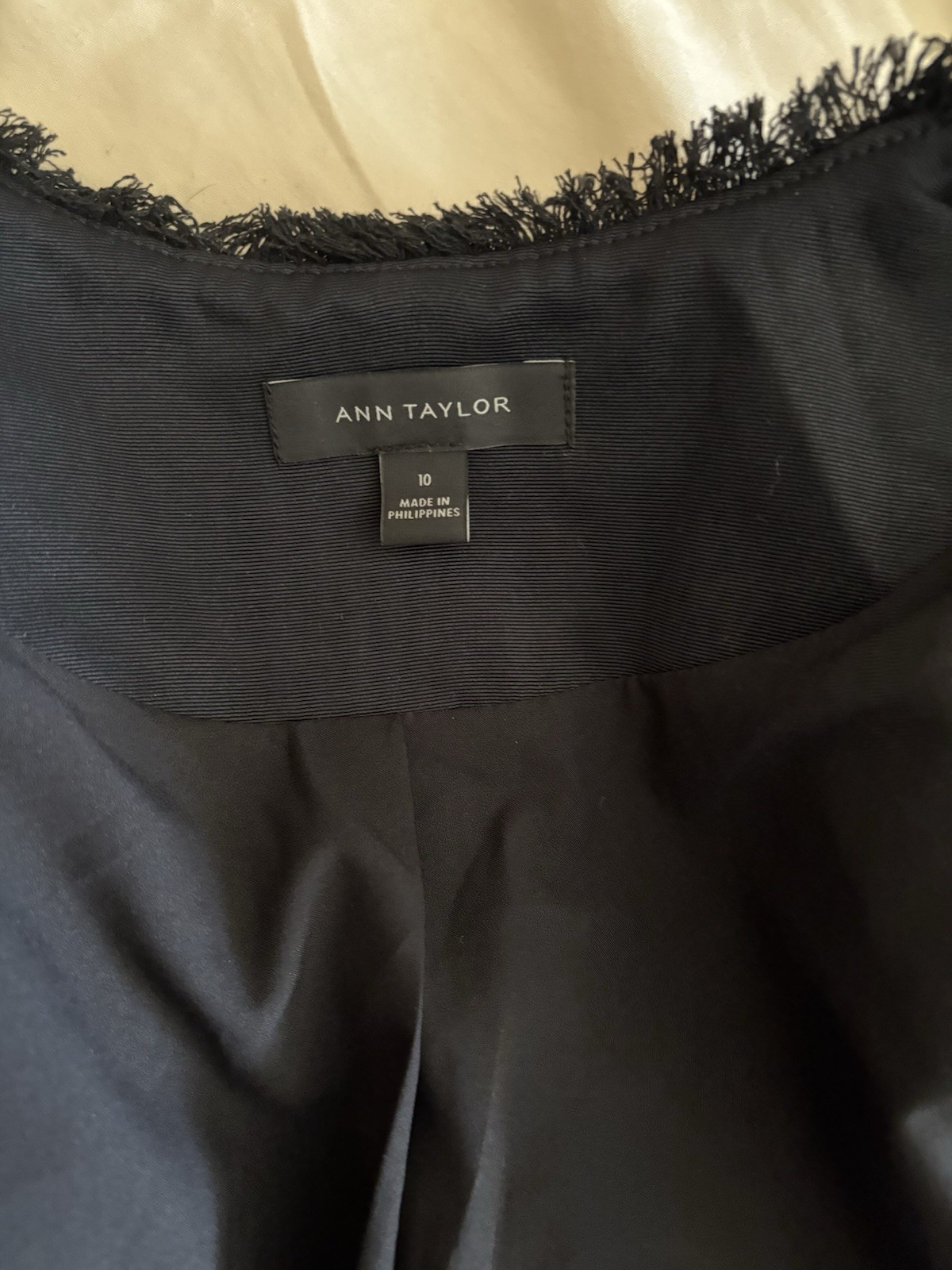 This Ann Taylor tweed blazer is a stylish and versatile piece! The black, white, and pink check pattern with fringe details adds a chic, preppy vibe. It’s perfect for work, meetings, or even casual outings—super easy to pair with skirts, pants, or dresses. The hook & eye closure fits comfortably, and the machine-washable fabric makes upkeep a breeze. Love the short length and long sleeves for a polished look. Great quality and timeless design—ideal for teachers, office wear, or anyone wanting a smart, put-together outfit!