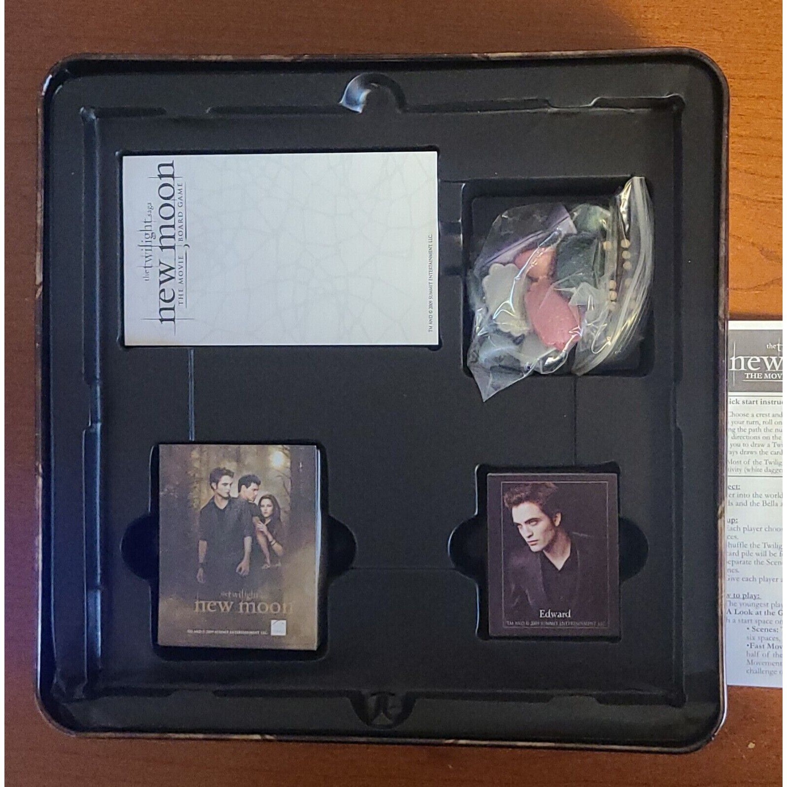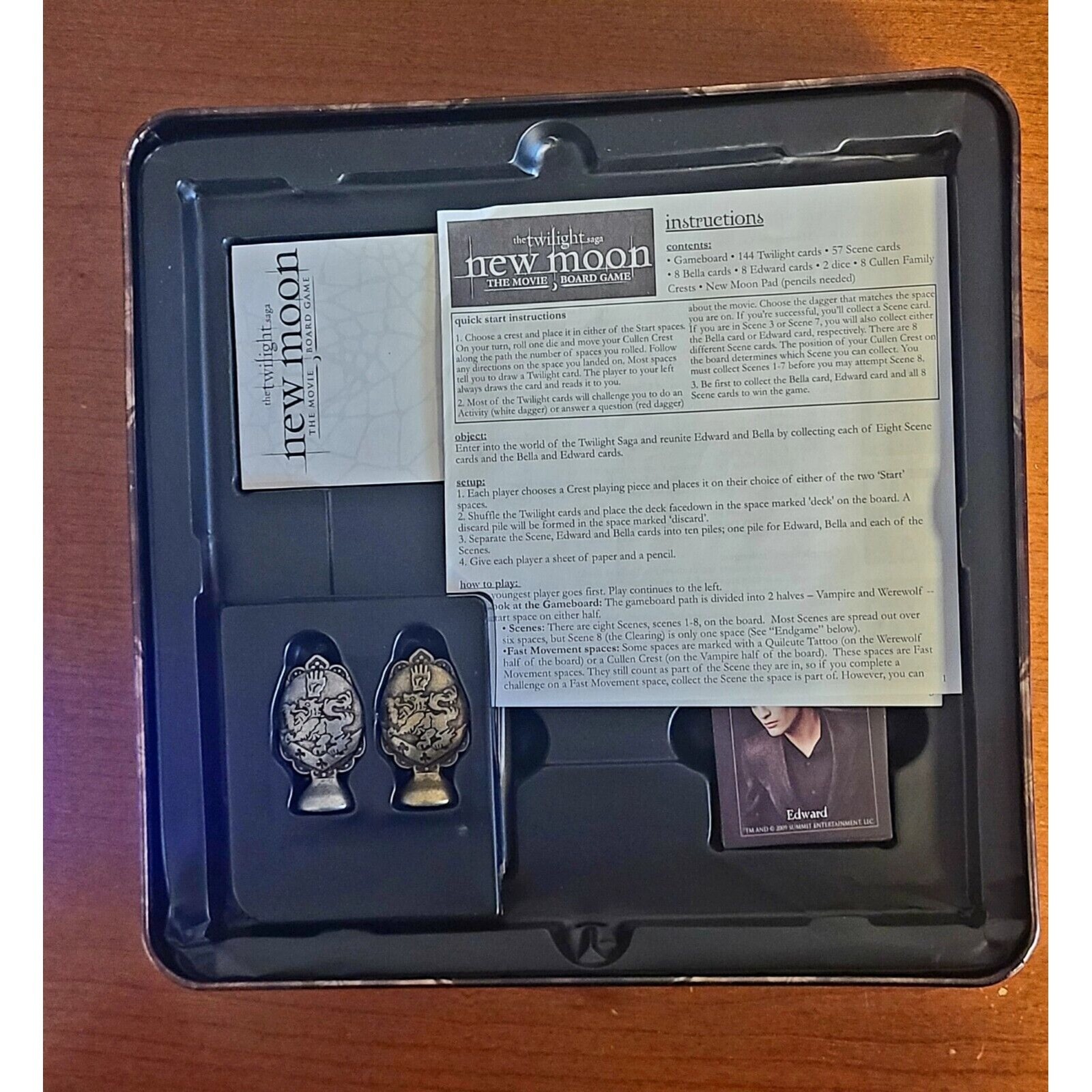 Immerse yourself in the world of Twilight with this New Moon Movie Board Game. This game board is designed to bring the excitement of the movie to life. It features collectible metal pieces that add to the fun of playing the game. The game is perfect for fans of the Twilight franchise and those who love board games. The game is easy to learn and play, making it suitable for all ages. It is a great addition to any collection of board games and is sure to provide hours of entertainment. Get your hands on this limited edition metal tin and add a touch of Twilight to your game night.
