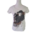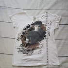 Twilight Size JR XL Vintage Twilight New Moon Jacob Graphic Tee White Werewolf In the great Team Edward vs Team Jacob debate, make your answer clear with this t-shirt showing your loyalty! Short sleeve scoop neck Graphic shirt with Jocob's face in swirling brown with New Moon title on bottom left side Wolf image on center back -Materials: 100% cotton -Excellent, pre-owned condition. No visible stains, flaws or tears. No to minimal signs of previous wear. Measurements included in photos - please inquire if more are needed. All offers considered - make one today!