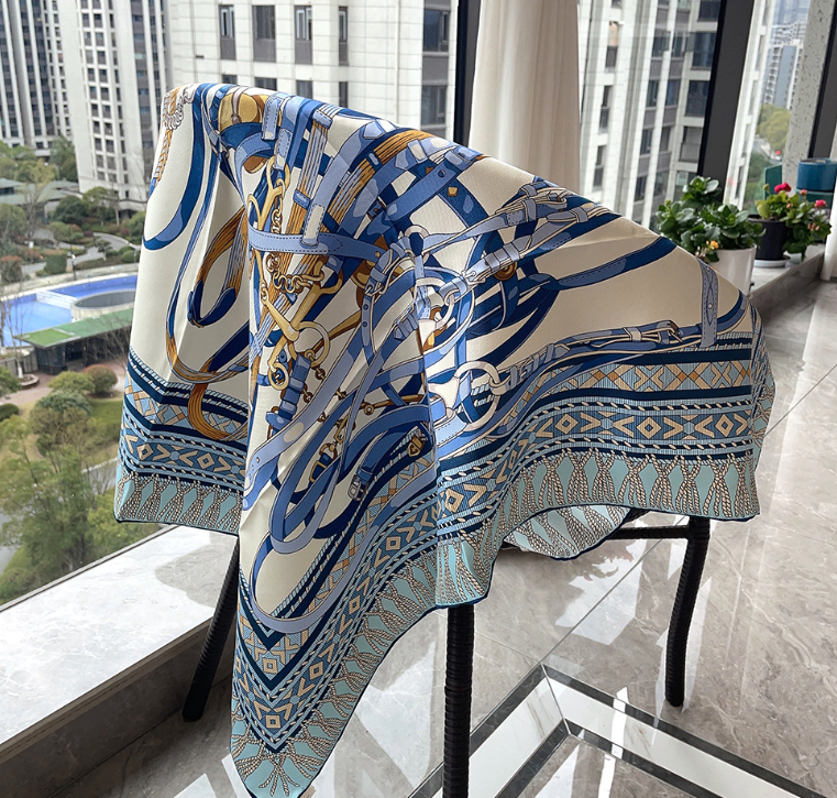 14 Momme Twill Silk Wrap Scarf Square Shawl Bandanna 88X88cm diagram Print new