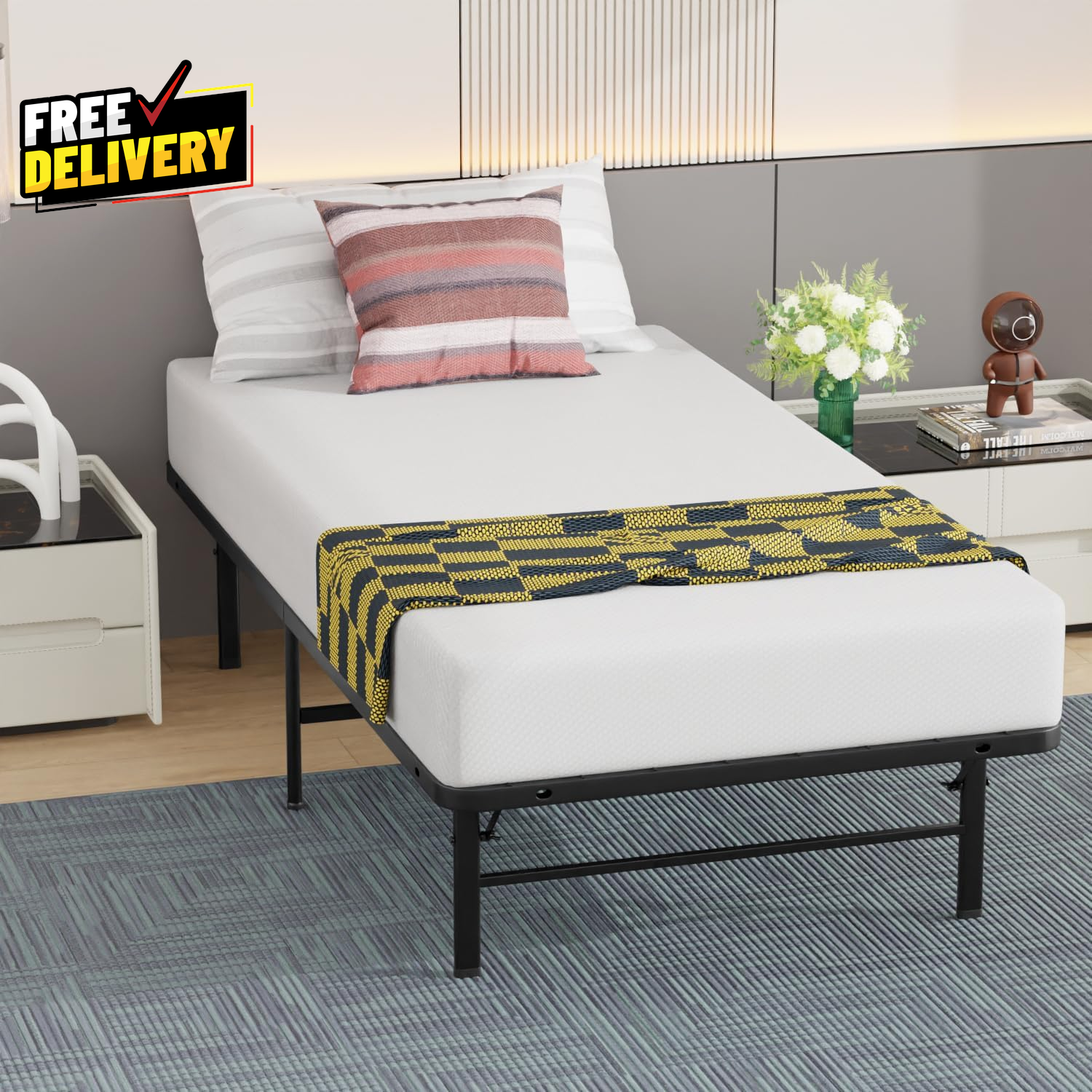 Store New Arrivals Add to Favorite View Feedback Contact Twin Bed Frame Metal Platform Bed Frame Twin Size 14 Inch Mattress Foundation... Description ✿『EASY ASSEMBLE』: The bed frame Assembly required and can be easily disassembled for storage or moving Metal Bed Frame, 14inches Platform Bed tall with 12.5 inches of ample under-bed storage.Bed Frame Platform Bed Frame Metal Mattress Foundation Frame Heavy-Duty Steel Slat Full Size Folding Bed Frame ✿『SUITABLE FOR HOME USE』:The bed frame Strong and sturdy Platform Bed Frame with 6 legs to give extra support for today's heavier Mattress Foundation including Memory Foam and Latex.Folding Bed Frame Metal Mattress Foundation Frame Heavy-Duty Steel Slat Full Size Platform Bed Frame ✿『EXTENSIVE USE』:The bed frame Ships small parcel and in a compact package to easily fit through narrow doorways, hallways or stairwells ,Metal Bed Frame.Metal Mattress Foundation Frame Folding Bed Frame Heavy-Duty Steel Slat Full Size Platform Bed Frame ✿『 CONTEMPORARY DESIGN』:This Is Our Metal Slats Bed Frame,The bed frame Complete mattress Foundation support system - replacing both the Platform bed frame & box spring .Platform Bed Frame Metal Mattress Foundation Frame Folding Bed Frame Heavy-Duty Steel Slat Full Size Bed Frame ✿『AST LONG USEING: Material』: Platform Bed Frame,Our premium metal bed frame made of selected eco-friendly materials, which is exquisite workmanship,Powder Coated Metal Mattress Foundation Frame.Bed Frame Heavy-Duty Steel Slat Platform Bed Frame Metal Mattress Foundation Frame Full Size Folding Bed Frame Item model number Twin Bed Frame Metal Platform Bed Frame Finish Type Powder Coated Assembly Required No Color Black Is Discontinued By Manufacturer No Product Dimensions 74"L x 37"W x 14"H Furniture Finish black Compatible With Mattress Size Twin Item Weight 20 pounds Maximum Weight Recommendation 440 Pounds Item Weight 20 Pounds Material Metal Style Modern Ground To Item Distance 12.5 Inches Included Components No Size Twin Special Feature Foldable ABOUT US Prior to making any purchase from our store, we’d like to introduce ourselves. My name is Shahzad Yaqub , and I am the proud owner of Epic Emporium Deals , located in the great state of Illinois, USA. I have been an active and trusted eBay seller since Jan 14, 2025 . At Epic Emporium Deals , we are committed to offering competitive prices and top-quality products . Our extensive collection features a wide variety of items, including media such as books, movies, music, and games , as well as electronics, toys, sporting apparel, clothing, tools , and general home and garden essentials —and much more! If you have any questions or require assistance, please don’t hesitate to reach out. Your satisfaction is our priority, and we look forward to providing you with an exceptional shopping experience. SHIPPING We are always working hard to ensure your package arrives as soon as possible. Please understand that some factors like weather, high postal traffic, and the performance of shipping companies are outside of our control. We offer free shipping to the lower 48 states and ship within 2 business days of payment, usually sooner. We do not accept P.O. Boxes. Please provide a physical address. For shipping outside of the continental USA, we only use eBay's Global Shipping Program. The item is shipped to IL and then sent to the rest of the world. International customers are responsible for all duties and taxes. Continue to 'check out' to calculate costs for shipping the item to your country. Messages regarding eBay's Global Shipping Program MUST be directed at eBay EXCLUSIVELY. RETURNS We do not accept returns under normal circumstances. However, we will gladly consider a return if the item is received broken or if the wrong size is sent to you. In all other cases, returns will not be accepted. CUSTOMER SATISFACTION We try our very best to make sure every customer is completely satisfied. If there's a problem, message us! We're happy to help.