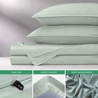 SLIP INTO LUXURIOUS COMFORT Our sheets envelope you in elegance and comfort so you can drift off to sleep with ease. Designed in Florida and imported from China. OEKO-TEX STANDARD 100 CERTIFIED Our bed sheets are OEKO-TEX Standard 100 certified and non-toxic so they are safe for even the most sensitive skin. The fitted sheet is crafted with deep pockets that stretch snugly over 16" pillowtop mattresses. Our bed sheets are available in an array of colors and sizes to accommodate your entire family with King, Split King, California King, Queen, Short Queen, Full and Twin bed sheet set sizes. WHERE DURABILITY AND COMFORT MEET Because the fabric is thermo-regulating, trapping 50% less body heat and humidity than other fabrics, our sheets help you to stay cool and dry on hot summer nights while remaining fresher longer and will ensconce you in luxurious comfort while becoming softer with every wash. DURABLE DOUBLE STITCHING The flat sheet and pillowcases feature double-stitched seams for enhanced durability and minimal fraying, allowing you to enjoy their softness for many years to come. EACH 3-PIECE TWIN BED SHEET SET CONTAINS: ✓ 1 Fitted sheet fully elasticized fitted sheet (39" x 75") with deep pockets ✓ 1 Generously sized flat sheet ✓ 1 Pillowcase with overlapping envelope-style closure LIFETIME GUARANTEE If you do not absolutely love your new bed sheets, simply return your order for a 100% refund. ✔ GENUINE 100% ORGANICALLY GROWN VISCOSE DERIVED FROM BAMBOO - Crafted from the finest quality luxusiously soft 100% Organically Grown Viscose derived from Bamboo, and are OEKO-TEX Standard 100 Certified and tested to be free from over 100 harmful substances, ensuring that it is safe and healthy for your family. Our bed sheets are never blended with other fibers or fabrics unlike most competitors. ✔ COMPLETE 3-PIECE TWIN (39"x75") BED SHEET SET - Includes 1 fitted sheet, 1 flat sheet and 1 envelope-style pillowcase with overlapping closure. The pillowcase and flat sheet feature quality sewn double-stitched seams to ensure long-lasting durability and easy care with cold water washing, while offering a sensuous silky feel that grows luxuriously softer with every wash. ✔ ULTIMATE COOLING SOFTNESS AND BREATHABLE COMFORT - Viscose derived from bamboo fabric is naturally thermo-regulating to keep you cool and relaxed while sleeping and providing all season comfort. The moisture-wicking properties of our resort-grade bedding is perfect for hot sleepers or those with sensitive skin while indulging in the ultimate luxurious softness. ✔ DEEP FITTED POCKETS, 300 THREAD COUNT SATEEN WEAVE - Features fitted sheets that have a fully elasticized border to ensure a snug fit for any mattress up to 16 inches thick. All bedding is made from 300 thread count sateen weave fabric for a softer, smoother and more silky feel than even the highest thread count cotton sheets. 300 thread count is the optimal choice for pilling resistance as higher thread counts mean thinner and weaker fibers. ✔ LIFETIME GUARANTEE - Every bedding purchase is backed by a risk-free Lifetime Guarantee against defects in materials and craftsmanship. Sleep soundly on these soft as silk sheets, knowing that our sheets are made from responsibly sourced materials. Designed in Florida and Imported from China. All fabric has been subjected to rigorous testing standard for flammability (Passed/ASTM F963-A6), heavy metals (Passed/ASTM E1479-16), and phthalates (none detected per CPSC CH C1001-09.3)