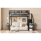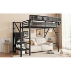 $ 101.91Metal High Loft Bed with Wardrobe Stairs Storage Shelf Full Queen Size Bed Frame