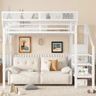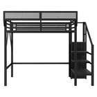 Twin Size Loft Bed Stairs Metal Twin Loft Bed with Storage Shelves High Loft Bed Features 【Twin Loft Bed with Storage Shelves for Upper】The twin metal loft bed features a storage shelf next to the upper bed, providing extra storage space. This shelf is perfect for keeping books, gadgets, or small items within easy reach. The shelf have mesh around which prevent thing falling down. It adds functionality without compromising space. 【Metal Twin Loft Bed with Staircase】The metal twin size loft bed come with staircase includes built-in storage compartments, making it easy to store items like shoes, toys, or blankets. The steps ensure safe and convenient access to the upper bed, enhancing both practicality and safety. The stairs can be installed on either right side or left side. 【Under Space of Metal Loft Bed】54.3 inch under the twin loft bed creates extra space for multi-functional use. You can place storage cabinets, a small sofa, or a desk underneath, maximizing the use of limited space and creating a versatile living area. 【Metal Loft Bed with Wardrobe】The staircase features a built-in wardrobe function, providing additional storage for clothes and accessories. This clever design adds more functionality to the metal full loft bed, making it a perfect solution for small bedrooms. 【Durable and Sturdy Construction】The twin size metal loft bed made from high-quality metal, this loft bed is durable and sturdy. The metal material ensures long-lasting use and stability, while also offering a sleek and modern look that fits well in any bedroom.Weight cap Descriptions Twin Size Loft Bed with Stairs, Metal Twin Loft Bed with Storage Shelves, High Loft Bed with This twin size loft bed features built-in storage shelves next to the upper bed. Come with staircase and wardrobe. The sturdy metal design ensures stability and durability, making your bedtime routine more organized and efficient. Specification Description & Dimensions Color: White Material: Metal Overall Dimensions: 94.3” x 47.8”x 73.4” (L x W x H) Size: Twin Size Height of Upper Guardrail: 11.3" Clearance Under the Bed 54.3" Recommended Mattress Thickness 6”(not included) Weight Capacity: 250LBS Net Weight: 125.4 lbs Gross Weight 136.84 lbs Box Spring Required No Country of Origin China