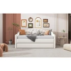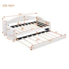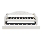 [Elegant design] This daybed features an elegant and generous design with tufted detailing, upholstered in luxurious velvet fabric. It comes with a backrest and two armrests. The backrest features a tufted design. With its stylish appearance and functional design, this daybed is an excellent addition to any modern living space. [Daybed Frame with Charging Station] This dual-purpose daybed accommodates two people comfortably, offering both seating and sleeping functionality. It is equipped with a charging station featuring USB&Type-C ports for added convenience. When you're lying on the daybed and your phone is running out of battery, you can conveniently charge it right away. [Maximized space] This daybed is designed with pull-out wheels, allowing for easy mobility and saving maximum space. It is perfect for accommodating overnight guests with its convenient and self-contained sleeping arrangement. Whether in a compact living room or a small guest room, this space-saving daybed offers comfort and functionality without compromising on style. [Solid Construction] Made of high-quality MDF, the frame of this bed is not easy to be affected by humidity change and lead to crack. The strong legs, wide boards and slats for bed and trundle,not only improve the weight capacity of the bed greatly but also ensure the stability. [Dimensions and Assembly] Overall Product Dimension: 80.2"L X 41.6"W X 33.2"H. Suitable for Twin size mattresses. Twin Size Tufted Upholstered Daybed with Trundle ,Velvet Sofabed with USB Charging Ports This daybed features an elegant and generous design with tufted detailing, upholstered in luxurious velvet fabric. It comes with a backrest and two armrests. The backrest features a tufted design. This dual-purpose daybed accommodates two people comfortably, offering both seating and sleeping functionality. It is equipped with a charging station featuring USB&Type-C ports for added convenience.With its stylish appearance and functional design, this daybed is an excellent addition to any modern living space.
