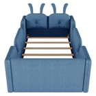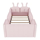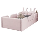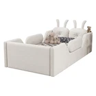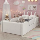 Product Feature [High Guardrails]-The 21” inch height of kids floor bed suitable for mattresses of various thicknesses to improve the safety of children's activities. Also eliminates the risk of any nasty falls and bumps, designed to create a safe space to roam and sleep for kids. [Whole Soft Design]-Kids floor bed is made from soft Teddy fabric and filled by high quality foam which get soft hand feeling and protect your kids away from hurt. [Removable Side Rails]-There are 2 small safety side rails come with this kids upholstered bed. The extra safety rails could avoid your kids fall down from bed during the time they are sleeping, more safety for little kids. And the rails can be removed if no need after growing up. [Rabbit Cushions]-Feature with 2 rabbit-shaped back cushions at headboard and fix with velcro. Can be removed for washing. The cushions is vacuum-packed. You just need to take off the packing and fluff in minutes. [No Need Box Spring]-No need box spring, height is deeper than most children’s beds so that you can choose 8 inch mattress. Instruction and tools included for easy assembly. Product Description Twin Size Upholstered Platform Bed with Rabbit Cushion 21 inch height for 8 inch thicker mattress, included the rabbit cushion make this bed more cute, and removable side rails for safety, teddy fabric with foam padding for soft feeling and avoid your kids from hurt. Description & Dimensions Color: White Material: Teddy Fabric Overall Dimensions: 78.5*43.11*21” (L x W x H) Size: Twin Recommended Mattress Thickness 8”(not included) Weight Capacity: 250LBS Net Weight: 97 lbs Gross Weight 105.6 lbs Box Spring Required No Country of Origin Vietnam