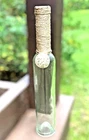 Twine Wrapped Cylinder Wine Bottle Decor. Crafted from clear glass, this decorative bottle features twine and a seashell and is perfect for any beach-themed room. Measuring 13 inches in height and 7 inches in diameter, this bottle is easy to care for and comes with a number of features that make it a great addition to your kitchen, living room, lounge, or dining room.