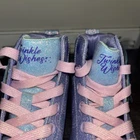Twinkle Toes by Skechers Hightop Kids Sneakers in size 11 for girls are pink athletic shoes featuring the Twinkle Wishes and Twinkle Toes characters. The high-top style adds a trendy touch to these sneakers, making them both stylish and comfortable for young girls to wear.