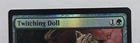 Introducing the Twitching Doll card from the Duskmourn: House of Horror Promo Pack. This rare and collectible Magic: The Gathering card features a spider creature type with a defense/toughness of 2 and an attack/power of 2. The cost to play this card is 1g, and it is illustrated by Warren Mahy with a stunning foil finish. This English language card is manufactured by Wizards of the Coast and has the card number 201. The Twitching Doll is a must-have for any serious collector or player of Magic: The Gathering. Add this card to your collection today and bring the House of Horror to life!