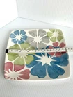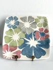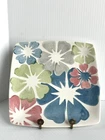 Set of 2 ceramic stoneware 8 inch square plates 2005 Canterbury Potteries Hand Painted Collection RETRO FLORAL by Artist Toby Pieri Back stamp Dishwasher / microwave safe Weigh- 1 lbs each Hand painted slate/pastel color daisy style flowers 1 plate has 2 minor scratches on flowers possibly from production (shown in photos) Thanks for looking