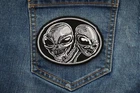 4x3 inch. Embroidered Patch with Plastic Iron on Backing. Patch can be sewn on to Leather Vests, Jackets or Chaps. Patch can also be ironed on to Denim Shirts, Hats or Bags. Iron on Patch at 280 Degrees Fahrenheit for 30 Seconds. Ironing on Application is a semi permanent way of attaching patches. Sew on the Patch for Permanent application. Do not iron on patches to Leather or Nylon Materials.