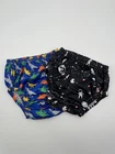 Two Baby Diaper Covers Dinosaur Outer Space 4T These two baby diaper covers are perfect for your little one! Featuring colorful and playful dinosaurs and prehistoric animals, they are made from high-quality polyester material. The covers are brand new and never been used, making them a great addition to your baby's diapering collection. With a size of 4T, these diaper covers are suitable for your growing baby and will provide comfort and protection. They are also versatile and can be used for both boys and girls. Don't miss out on the opportunity to add these adorable diaper covers to your baby's wardrobe.