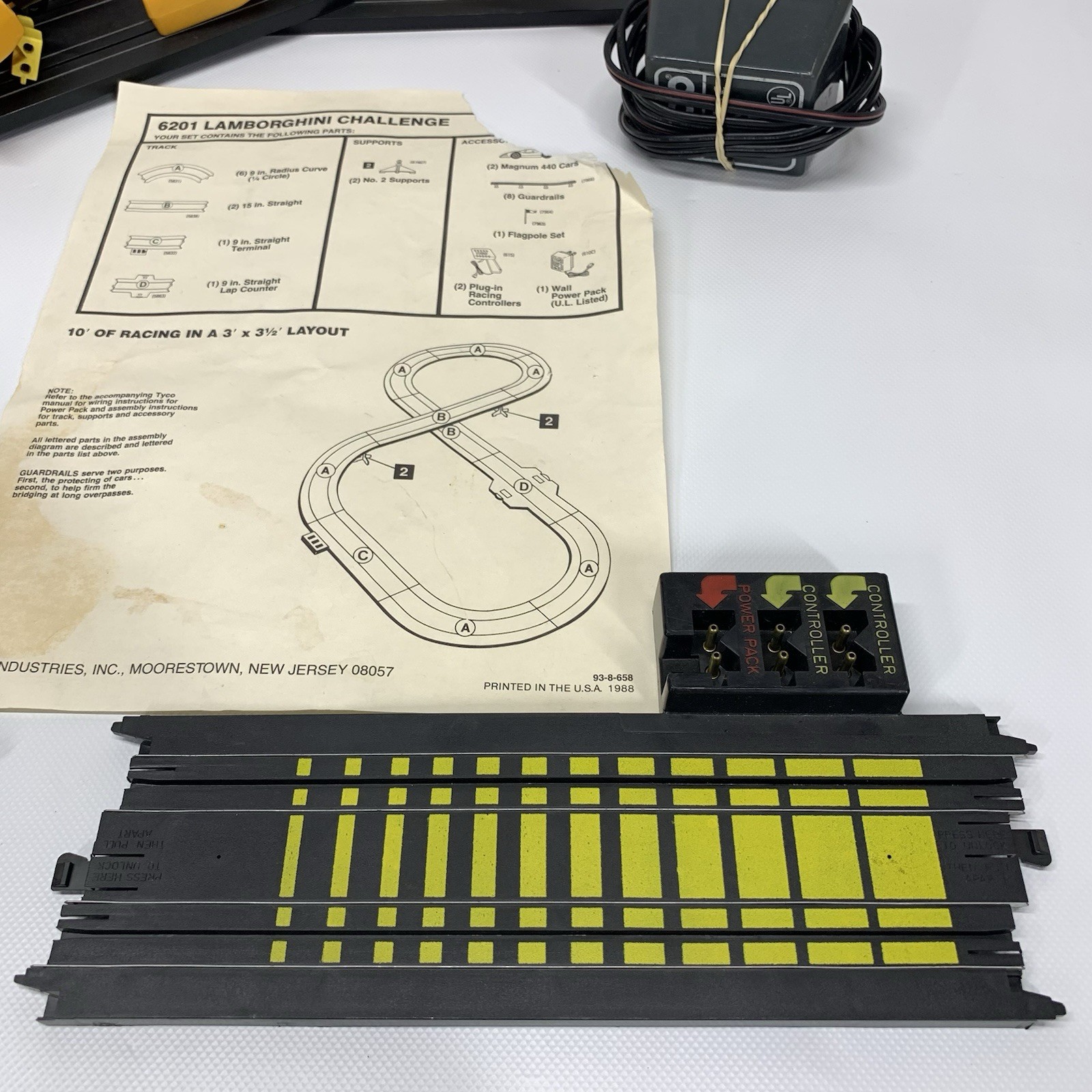 Tyco Lamborghini Challenge 6201 Slot Cars Incomplete Set Track Only No Cars Tested and working, borrowed cars from another set I will be listing at a later date to test it. No cars, or any track accessories included, comes with an extra untested straight terminal and 3 remotes. One remote the trigger sticks, other two work but one of them has something rattling around inside it. We are passing our shipping discount on to you. Thank you for Looking! We hope you will check out our other items as you never know what we may find. Our shipping might be a little more than others at times but that is because we pack things to withstand the worst that can happen to them. When you get your order in one piece and see the way it is packaged, we hope you will see why our cost to ship is higher at times than others. Materials to protect your order add weight and size to the package. We are continually looking for ways to reduce costs for you, but we will not reduce what we feel is the appropriate protection for your order. You will never get an order from us that is just tossed in a box free to move inside the box. Every order is packaged with its probably getting thrown or dropped at some point on its way to you in mind. All Clothing Items are cleaned before listing. Always open to reasonable offers.