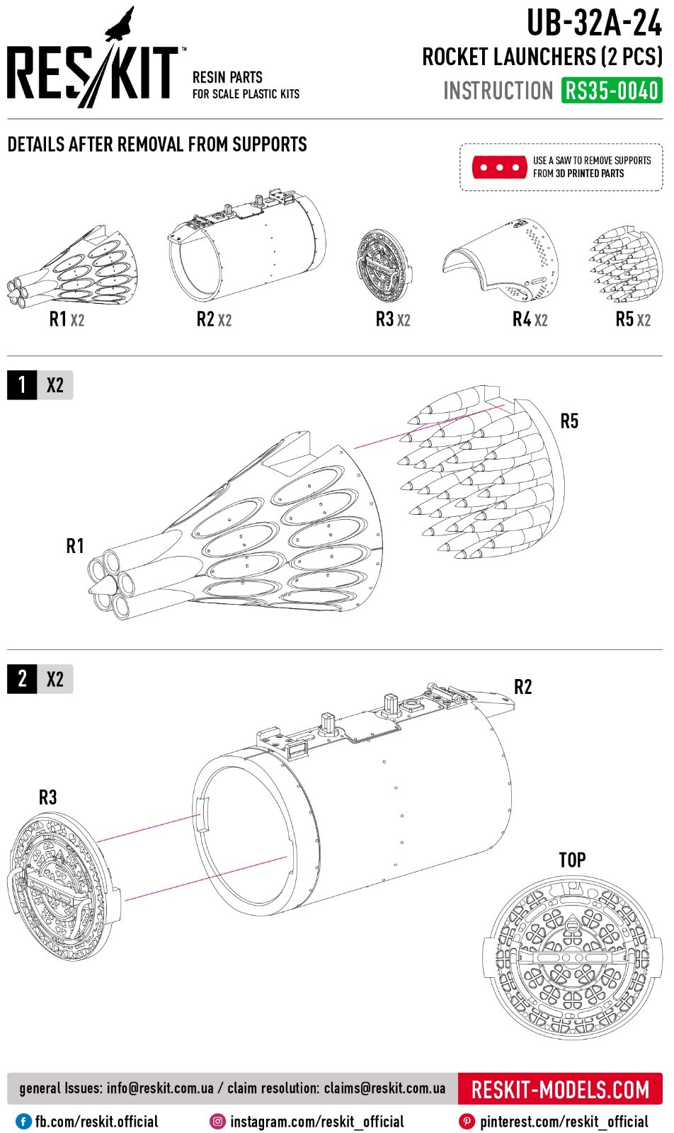 UB-32A-24 rocket launchers (2 pcs) (Mi-24, Mi-8) (3D Printed) ResKit RS35-0040 - for Plastic Model Kit Enhance Your Scale Models with ResKit | High-Quality Resin & 3D-Printed Accessories RESKIT - Accessories for Scale Plastic Kits Upgrade your scale model collection with high-quality resin parts from ResKit. Our Ukrainian-made parts are meticulously crafted to provide the most accurate and detailed representation of original components. Whether you're building aircraft, helicopters, military vehicles, or figures, ResKit has the perfect parts to enhance your project. Scale: 1/35 Manufacturer: RESKIT (Accessories for Scale Plastic Kits) Country/Region of Manufacture : Ukraine Condition : New in Box Category: Resin & 3D accessories Type of equipment : Helicopters Type of product: Arms and weapons Recommended kit: Any UB-32A-24 rocket launchers (2 pcs) for model kit: Mi-24 Mi-8 ResKit is a Ukrainian manufacturer of high-quality resin parts and accessories for scale models . The products are distinguished by a high level of detail and accuracy, which allows modelers to create the most realistic models of military equipment, aviation and other objects. Key Features: Premium Quality: Our resin parts are made with the finest materials and precision engineering. Extreme Detail: Experience unparalleled detail and realism in your models. Wide Range: Choose from a vast selection of parts for various scales and subjects. Easy to Assemble: Our parts are designed for easy integration into your existing model kits. Superior quality! ResKit parts allow you to create a model with incredible detail. ---------------------------- >>> Visit our eBay store! <<< You will find everything you need at great prices. Scale model accessories are a wide range of parts, spares, and components that can help you make your model even more realistic and detailed. In our catalog, you will find everything you need to assemble and repair model cars, airplanes, ships, tanks, and weapons. Our accessories are made from high-quality materials and meet all standards. We offer a wide range of models and sizes so you can find what you need. Buy scale model accessories in our store and make your model even more unique!