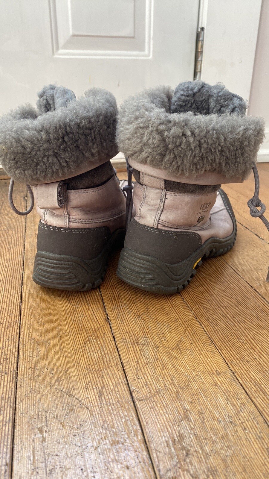 The UGG Adirondack II Gray Boots in size 7 US for women are designed for activewear in snowy conditions. These snow boots by UGG feature a stylish gray color with a leather upper, providing both functionality and fashion. The UGG Australia Adirondack model offers a comfortable and durable option for outdoor activities during colder weather.