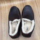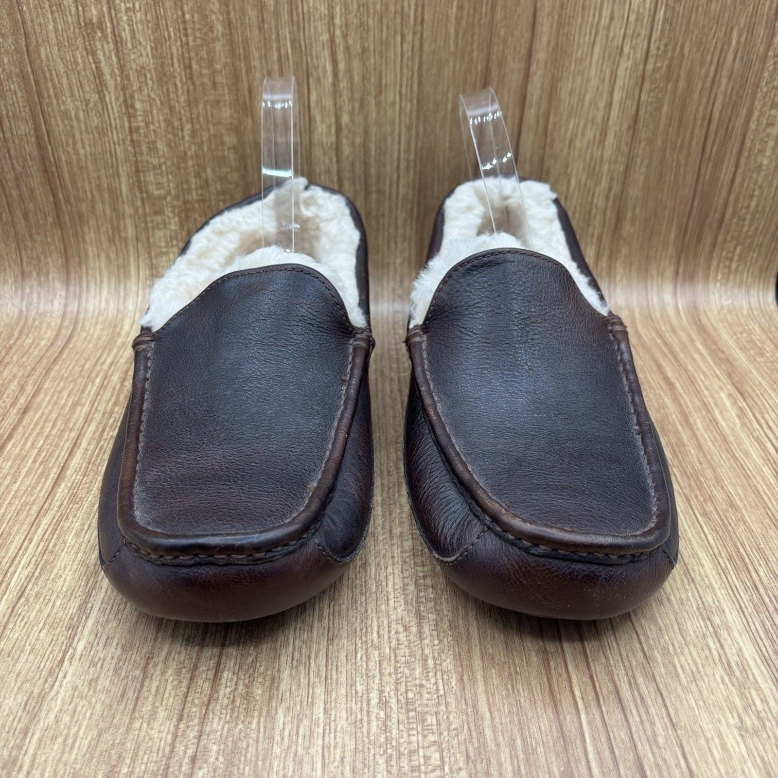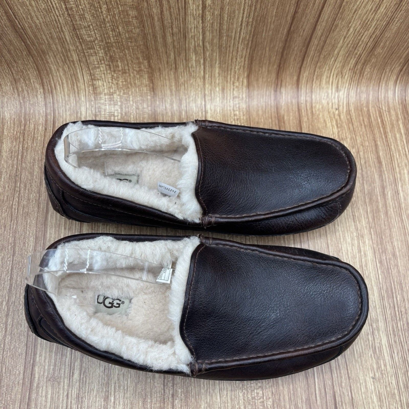 UGG Ascot Mens Size 9 Dark Brown Leather Slip On Sheepskin Slipper Loafer Shoes Preowned See photos