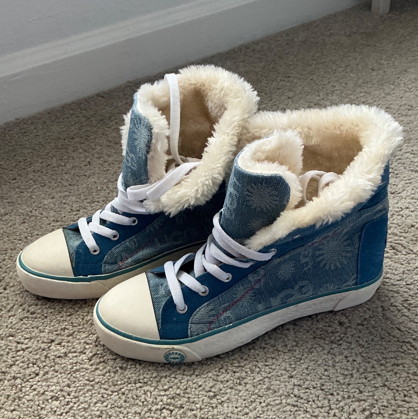 Wrap your feet in pure comfort with these UGG winter sneakers, a perfect blend of style and coziness for the chilly season. These low-top, lace-up sneakers feature a soft fur upper, ensuring warmth and breathability. The classic blue color, complemented by the subtle UGG logo accents, offers a versatile look that transitions effortlessly from activewear to casual outings. Designed for women who value both comfort and fashion, these size 7 athletic shoes boast a slip-resistant sole, making them ideal for walking and other winter activities. The vegan-friendly construction means no compromise on quality, while the timeless design ensures these sneakers will be a go-to choice for seasons to come.