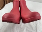UGG CHEVONNE RIBBON RED WATERPROOF CHELSEA RAIN BOOTS WOMEN'S SIZE US 9 Great Used Condition Inspired by the traditional galosh, we add a subtle heel and trim it down to a 5 shaft height for easy entry and any-outfit versatility. Sleek on the outside and warm on the inside, The boot features sheepskin-lined polyurethane insoles for a remarkably soft wearing experience. Built with the wet season in mind, this fully-waterproof style includes pvc uppers and outsoles, plus an elegant neoprene shaft embossed with modern UGG logo detailing.