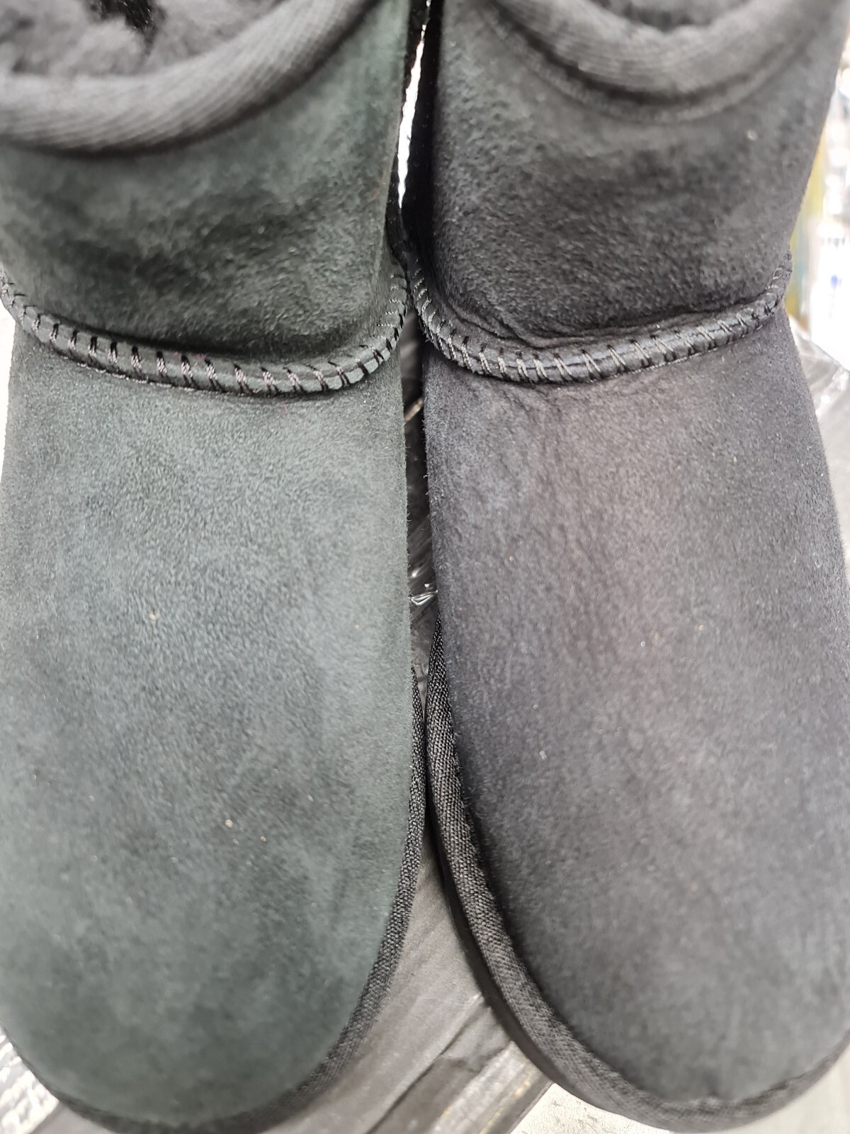 Brand New. The right foot is a bit faded compared to the left. See photos. Not in original box. Classic mini boot lined with sheepskin 100% Leather Dyed Sheepskin (Fur Origin: Australia/United Kingdom/Ireland/United States/Spain) Synthetic sole Shaft measures approximately Ankle" from arch Heel measures approximately 1" Platform measures approximately 0.5 inches Boot opening measures approximately 14" around Available in whole sizes only. If between sizes, please order 1/2 size down from your usual size. 17mm Twinface sheepskin upper 17mm sheepskin lining and insole Treadlite by UGG outsole for comfort Topically applied water repellency treatment