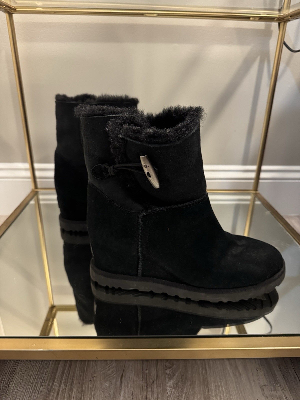 These UGG boots are so cozy and stylish! The toggle wedge adds a cute touch, and they’re in perfect condition—barely worn with the sticker still on. Super comfortable and true to size—love them!