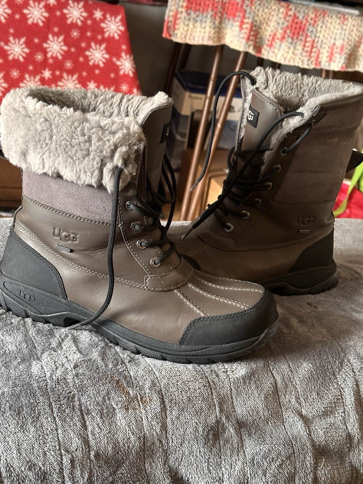 Stay warm and dry this winter season with these UGG Men's Butte Waterproof Boots. These boots feature a lace-up closure, waterproof leather upper material, and a standard shoe width. The solid black and grey color scheme is perfect for any outfit, and the snow boot style is great for tackling wintry conditions. These boots are designed for men and come in a UK shoe size 9 and US shoe size 10. The waterproof feature ensures that your feet stay dry, and the standard shoe width provides a comfortable fit. Perfect for any winter activity, these UGG boots are a must-have for the season.