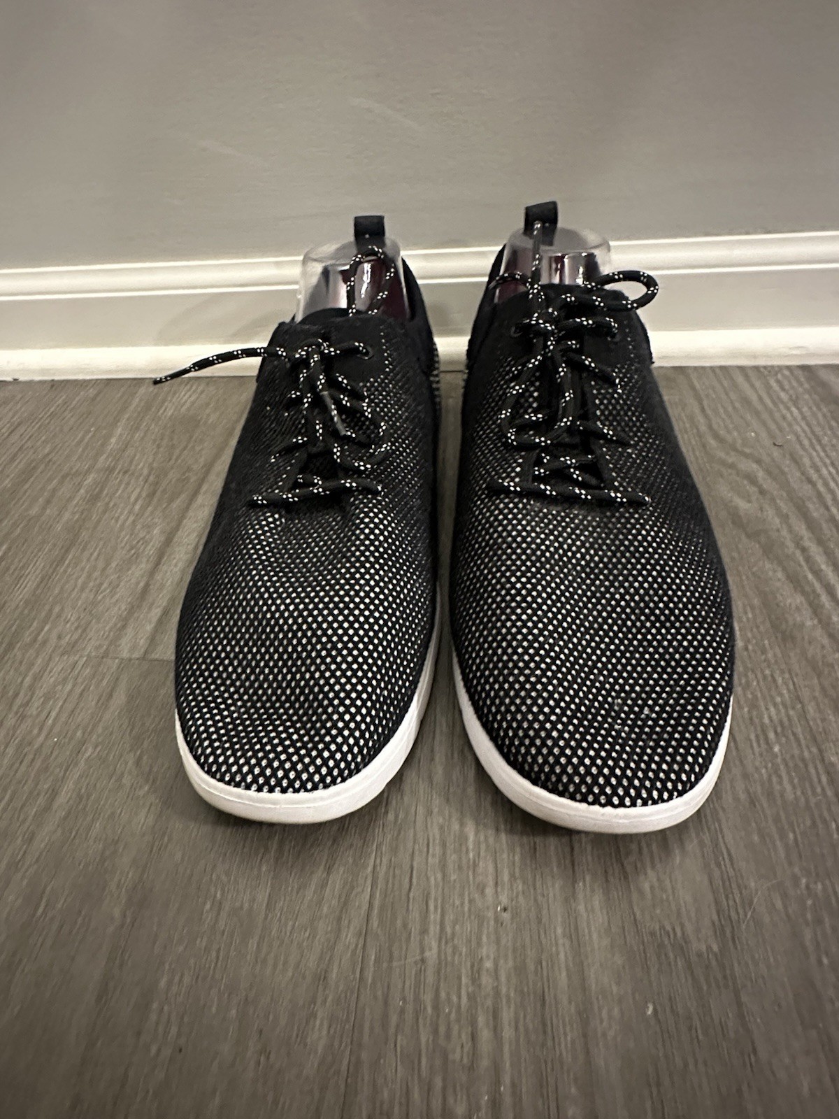 The UGG Men's Feli Hyperweave casual athletic sneakers in black, size 13, offer a stylish and comfortable option for men looking for a versatile shoe. With a lace-up closure, solid black color, and synthetic lining, these sneakers feature a synthetic upper material and fabric insole for added comfort. The UGG brand guarantees quality, and the sleek sneaker style is perfect for casual wear. Perfect for men who value both fashion and functionality in their footwear. Preowned Good Condition