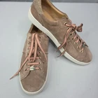 Brand & Model: UGG Milo, size Women’s US 9 Material: Premium fawn suede with smooth leather accents Style: Low‑top casual sneaker – perfect for everyday wear Comfort: Cushioned footbed & padded collar for all‑day support Condition: Good pre-owned condition Care: Suede upper – brush gently, spot clean only