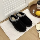 Suede upper, sheepskin and wool lining and insole, UGG braid trim A slipper for all occasions, our best-selling Tasman features the same light, durable outsole as our Classic boot, so you can wear it both indoors and out. Lined with plush natural wool, it’s crafted from soft suede with an embroidered braid and easy slip-on silhouette. Pair with boyfriend jeans and a knit sweater.