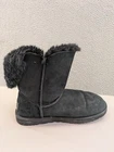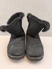 The UGG Women's Bailey Button Bling Short Boots in Black Suede, size US 9, are a stylish and versatile choice for the winter season. These mid-calf boots feature a round toe, pull-on closure, and a flat heel for ultimate comfort. The black suede upper, lined with sheepskin and accented with shearling fabric, gives these boots a luxurious feel. Perfect for casual occasions, these UGG boots from the Bailey line are a must-have for any woman's shoe collection.