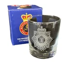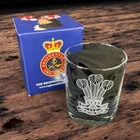 British Army Regiments Whisky Glass A lovely single 10oz round whisky glass with a selection of over 60 current and old Regiments of the UK British Army. PLEASE NOTE This listing is for QUEEN'S CROWN versions of the cap badge. If King's crown required, please leave a message at the checkout. Most images are accurate - We are gradually upgrading the range and glasses and engraving may differ slightly from what is currently displayed. If in doubt, please contact us for the latest updates. Delivery Paid for delivery is Royal Mail Tracked 48hr service. NOTES: Please be aware we will accept no liability for damaged goods if delivered to a 3rd party address (ie Argos, eBay GPS) About Us Born in Edinburgh Castle in 2011, we grew from a desire to re-open the Royal Scots museum shop, which had closed as a result of the merger of the Scottish Regiments into the Royal Regiment of Scotland in 2006. Then in conjuncture with the Royal Regiment of Scotland, to provide some sort of PRI facility to the regiment, the Scottish Regimental Store opened in 2012 in a disused garage in Bonnyrigg. Since that day, we have developed and grown by opening a shop in Edinburgh’s old town and becoming a truly Tri-Service provider of military giftware and uniform accessories. Now based in Port Glasgow, although the Royal Regiment of Scotland is still our core customer we have also supplied directly, several of the UK’s primary Regiments and Corps, including Royal Tank Regiment, The Mercian Regt, RAMC & SAS.