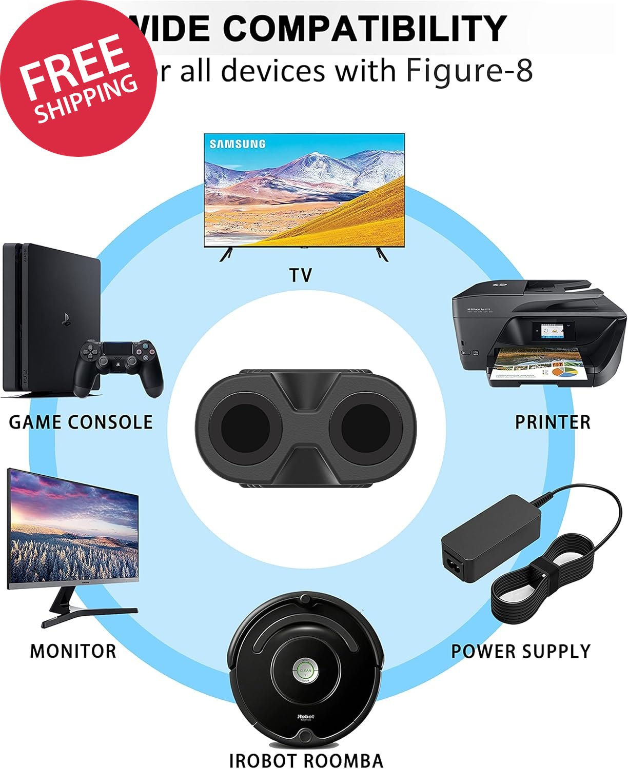 [UL Listed] 6Ft 18AWG 7A 125V AC Power Cord 2 Prong Cable Non Polarized (NEMA 1-15P to IEC-320-C7) FEATURES:High quality two prong 6ft long c7 power cords.NEMA 1-15P/2 Slot/Non-Polarized/figure 8 power cables.Certified by UL,use it with worry-free. TV POWER CORDD:Power cord for Samsung/LG/TCL Roku/Sony/Insignia/Sharp/JVC/Hisense/Toshiba 24" 32" 40" 43" 48" 49" 50" 55" 60" 65" 75" LED LCD Smart 1080p 4K HDTV,Monitor,Apple TV 1st,2nd,3rd,4th,5th Generation (4K). COMPATIBILITY:HP Deskjet/Officejet/Photosmart/Envy/All in one/Canon Pixma/Epson/Brother/Lexmark Printer,Scanner,Sound Bar,Entertainment System,Sonos Player,Waterpik Water Flosser,Retro Boombox,Action Keyboard,Digital Piano,Camera Battery/Laptop Notebook Charger. WORK FOR:Sony PS5/PS4/PS3/Playstation 5 4 3 Slim,Microsoft Xbox One X,Xbox One S,Xbox 1s 1x Edition Game Console,PSP/PSV supply cable,and other devices with 2-slot figure-8 connector. Professional Service:Our commitment to excellence doesn't end at the point of purchase. We offer comprehensive Product support ,After-Sales Service,and 24H Customer Service.Customer satisfaction is our top priority,and our customer service team is the heart of this mission. We pride ourselves on delivering personalized,friendly,and professional support that goes above and beyond your expectations. Product description Suitable for Devices With 2-Slot Figure-8 Connector Compatibility: Sony PS5/PS4/PS3/Playstation 5 4 3 Slim Microsoft Xbox One X,Xbox One S,Xbox 1s 1x TV: Samsung/LG/TCL Roku/Sony/Insignia/Sharp/JVC/Hisense/Toshiba 24" 32" 40" 43" 48" 49" 50" 55" 60" 65" 75" LED LCD Smart 1080p 4K HDTV,Monitor,Apple TV 1st,2nd,3rd,4th,5th Generation (4K) Printer: HP ENVY/Officejet/Officejet Pro/Deskjet All-in-One/Deskjet Color Inkjet Printer/PhotoSmart,Canon PIXMA/Maxify,Epson WorkForce/Stylus/Expression Home/Artisan/Epson Expression Premium,Brother Label Printer Others: Sonos One Player,Scanner,Sound Bar,Entertainment System,Gameday,Bose Wave Speaker System,JBL Cinema,Waterpik Water Flosser,Klipsch Reference R-20B,ZVOX SoundBase 570,Sony Portable CD,Brother Sewing Machine,Nord Stage 2 EX,Electro 2 4 5,Echo Sub(1st gen)/Echo Link amp,Digital Piano Keyboard,TaoTronics,Mac Mini 2010 2011 2012 2014,Retro Boombox,Action Keyboard,Digital Piano,Camera Battery/Laptop Notebook Charger. Samsung TV: HG55NA790MF LN32D403E2D LN32D450G1D LN40D550K1F LN40D630M3F LN40E550F7F LN46D630M3F LN46E550F6F UN22D5000NF UN22D5003BF UN26D4003BD UN26EH4000F UN32D4003BD UN32EH4000F UN32EH4050F UN32EH5000 UN32EH5000F UN40D5005BF UN40EH5300 UN40EH5300F UN40EH6000F UN40ES6100F UN46D6000SF UN46D6420UF UN46D6900WF UN46D7000LF UN46EH5000F UN46EH5300F UN55EH6050F UN55ES8000F UN60ES7100F UN60F8000BF UN65F9000AF UN65H8000AF UN65HU8500F UN65HU8550F UN65HU9000F UN65JS8500F UN65JS9000F UN75F8000AF UN75HU8550F TCL TV: 28D2700 28S305 32S303 40FS3750 40FS3800 40FS3850 43FP110 43-INCH 43S303 43S305 43S403 43S405 43S517 43UP120 43UP130 48FS3750 48FS4610 50FS3800 50FS3850 50-INCH 50UP130 55S405 55S405RB 55S517 55UP130 55US5800 65C807 65S403 65S405 65S517 65US5800 HP ENVY: 100 110 120 121 4500 4501 4502 4503 4504 4505 4507 4508 4510 4512 4516 4520 4522 4523 4524 4525 4527 4528 5530 5531 5532 5534 5535 5536 5540 5544 5545 5640 5642 5643 5644 5646 5660 5661 5663 5664 7640 7644 7645 5539e 5665e D410 D410a D410b D411 D411a D411c D411d HP Officejet/Officejet Pro: 250 3830 3833 4215 4620 4630 4635 4650 5740 5741 5743 5744 6000 6100 6500 6600 6700 6815 6830 7000 8600 8610 8620 8630 6500A J4680 Canon PIXMA: iP1000 iP1200 iP1300 iP2000 iP2200 iP2500 iP2600 iP3000 iP4000 iP4700 iP5000 iP5200 iP5200R iP5300 iP6000D iP8500 iX4000 iX5000 MG2520 MG3220 MG5520 MG6320 MG7120 MP110 MP190 MP460 MP51 MP600 MP700 MX452 MX472 MX7600 MX850 MX860 MX870 MX922 PRO-100 Pro9000 Pro9500 Mark II Soundbar: Samsung Soundbar(HW-F355 HW-F550 HW-FM35 HW-H450 HW-H550 HW-HM45 HW-HM45C HW-J250 HW-J355 HW-J370 HW-J450 HW-J550 HW-JM25 HW-JM45 HW-JM45C),Yamaha Soundbar(YAS-106, YAS-107BL, YAS-207BL) Samsung Home Theater Systems: DA-E750 HT-F4500 HT-FM53 HT-H4500 HT-H5500W HT-H6500WM HT-HM55 HT-J4100 HT-J4500 HT-J5500W HT-JM41 TW-J5500 iRobot Roomba: 400 405 410 415 416 418 4000 4100 4105 4110 4130 4150 4170 4188 4210 4220 4225 4230 4232 4260 4296 4400 4418 500 510 530 532 535 540 550 560 562 570 580 700 760 770 780 880 870 800 R3 80501 610 611 625 627 630 650 653 654 660 670 0701 20914 17062 Samsung Monitor: S23C350H S24B300EL S24D300H S24D390HL S24D590PL S24E310HL S24E390HL S24E510C S27D360H S27D590C S27D590P S27E390H S27E510C S29E790C S34E790C T24C550ND U28D590D U28E590D Laptop Charger: Dell, Sony, Acer, Asus, Gateway, Toshiba, MSI, Compaq Laptop Charger Color Black Voltage 125 Volts Plug Format Type B Connector Gender Male-to-Female Size 6Ft Shipping Fast shipping is very important for us. Our standard US shipping service is FREE. Your order will be shipped within 2-3 business days upon full payment received. Your order will be delivered within 2-3 business days after the handling time. We only ship to the confirmed PayPal address. We reserve the right to cancel any order for any reason at any time. We are not responsible for undeliverable addresses. Returns and payment We offer a 30 days return policy from checkout winning date. We allow only PayPal as payment method FeedBack Your feedback very important to us, after you get your package and you are satisfied with our service please leave us positive feedback If you have any problem with your order / any questions please before leave any type of feedback For any questions, using eBay contact system Please visit our eBay store to check out other items for sale! Thank you for shopping at our store.
