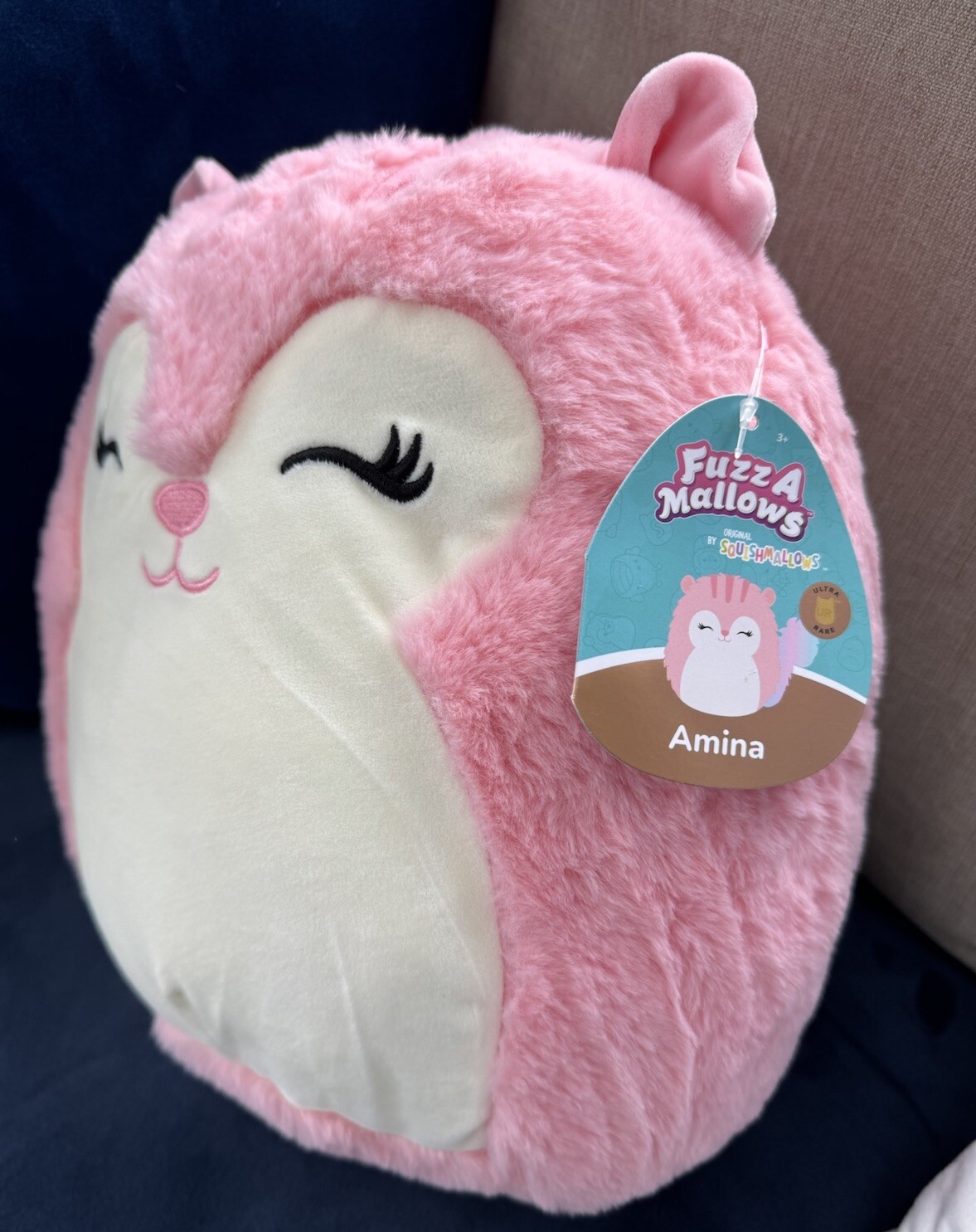 Brand new, never used, still with tags This product is a current Squishmallow toy, specifically the AMINA Fuzz-A-Mallows 12” Inch Pink Squirrel. It is an Ultra Rare item and features a soft plush material. The toy is washable and suitable for children aged 3-7 years old. The Squishmallow brand is known for creating cuddly and collectible plush toys, and this particular item is part of the Squishmallow character family.