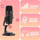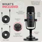 ADJUSTABLE PATTERNS: With cardioid and omnidirectional polar patterns, you can record in almost any situation with just mic. Choose cardioid for a concentrated, directional pickup, or omnidirectional for 360-degree audio when recording with friends. Its exceptional sound fidelity ensures that every recording, whether on a PC or , is crystal clear. BROADCAST-QUALITY AUDIO: Three-capsule array captures 48kHz/24 Bit broadcast quality sound resolution for no-latency and features a powerful frequency response of 20Hz to 20kHz. The UM300 USB microphone excels in capturing studio-audio for a wide range of applications, from podcasting and ASMR to gaming and singing. FOR CONTENT CREATORS OF ALL LEVELS: The plug-and-play functionality of the UM300 USB microphone simplifies the setup process. Its user-friendly design makes it accessible to both amateur and professional creators, enhancing any podcast equipment bundle. VERSATILE USE: Whether you're looking for a gaming mic, a podcast microphone, or a microphone for singing, this device's compatibility with both PC and iPhone ensures it adapts to various settings, including gaming, podcasting, and mobile content creation. DESIGNED IN LOS ANGELES: , carries a full assortment of innovative gear for content creators and proudly supports the content creation community.