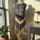 UMGEE | Boho Fringe Open Front Navy Blue Cardigan Duster Aztec Print | Size S Size Small Navy Blue w/ Crochet cream colored fringe Aztec print on back Excellent pre-owned condition Zero flaws noted