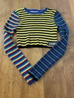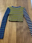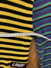 Measurements are taken on a flat surface in centimeters. Condition consistent with light use. Please look at the pictures carefully, they’re part of the description. Material and size tags are missing. Size is small according to measurements.