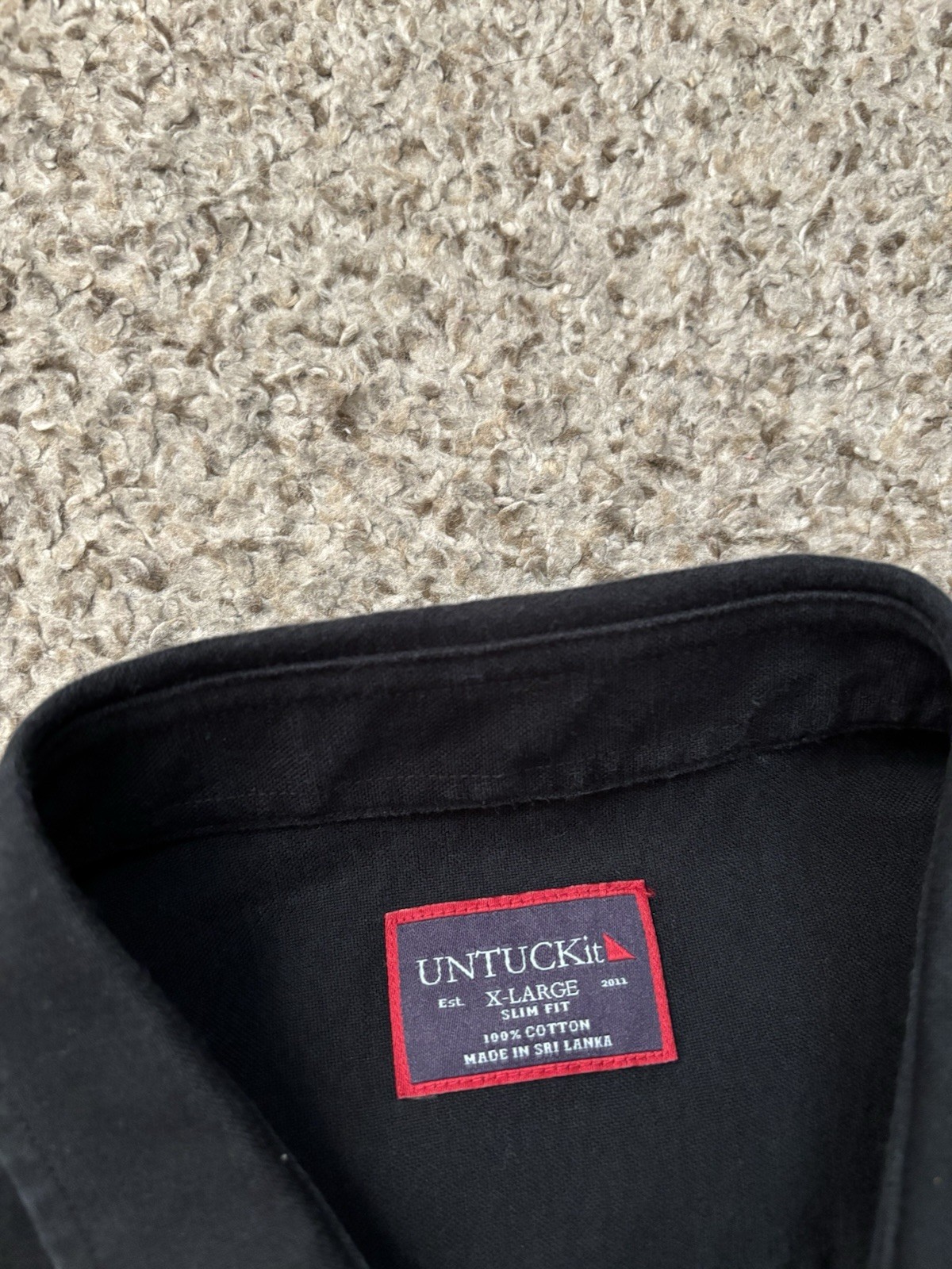 The UNTUCKit Shirt for men in size XL is a classic black short sleeve button-up shirt made of soft brushed cotton fabric. It features a solid pattern and a collared neckline with a button-down style. Perfect for various occasions such as casual, formal, workwear, or travel, this shirt is machine washable and suitable for all seasons. With a regular fit and woven fabric type, this UNTUCKit shirt is a timeless wardrobe staple that exudes a classic theme. Made in Sri Lanka, this shirt is a versatile and stylish addition to any man's clothing collection.