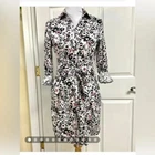 UNTUCKit Simone Tie Waist Floral Button Front Cotton Stretch Shirt Dress Size