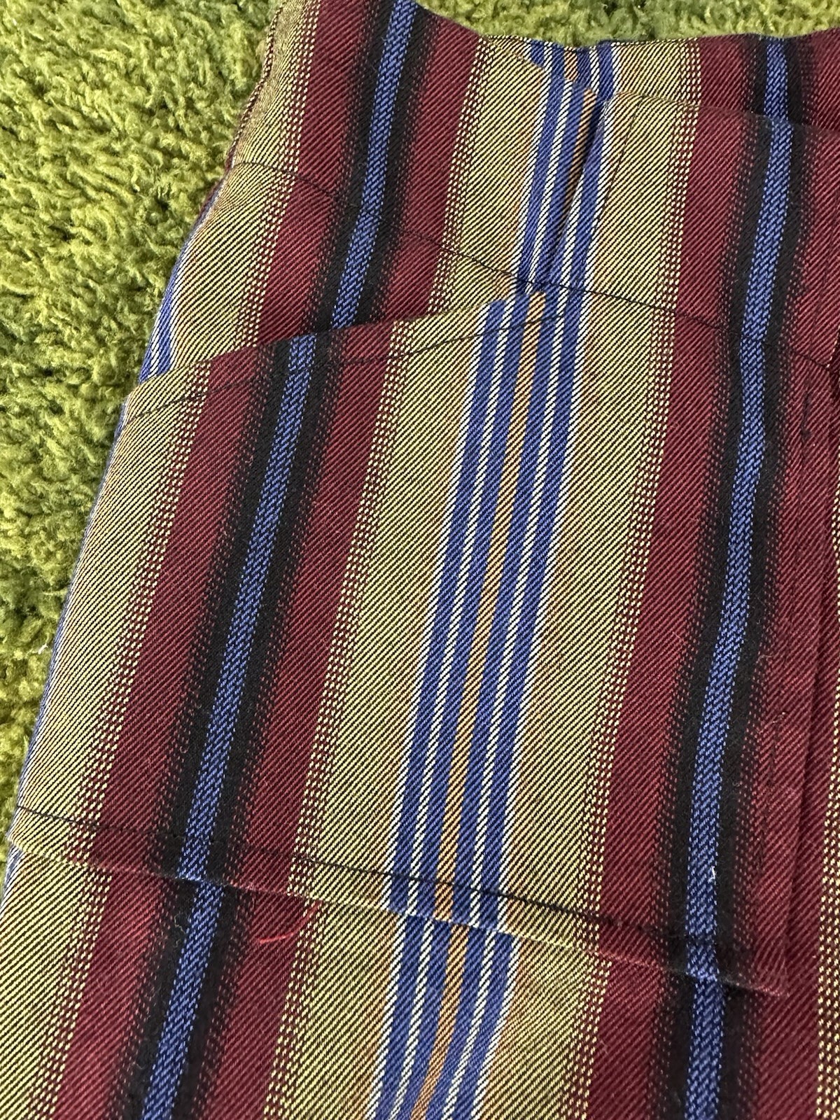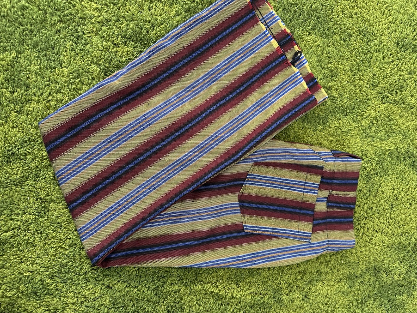 The Urban Outfitters Jenny Stripes Low Rise Flare Pants in size 0 are a stylish and trendy addition to any woman's wardrobe. Featuring a classic striped pattern, these pants have a flattering low rise and flared leg for added flair. Made from a comfortable blend of polyester, viscose, and elastane, these pants also have convenient pockets for added functionality. Perfect for a casual day out or a night on the town, these versatile pants are sure to make a statement with their multicolor design.