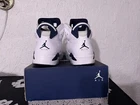 1x Pair: Air Jordan 6 Retro "Midnight Navy (2022)" - Men's 12 Size: Men's US 12 Condition: USED - OG BOX! Colorway: WHITE / MIDNIGHT NAVY (White / Navy Blue / Icy) Style: CT8529-141 Release Date: 05/11/2022 Product Description: For the first time in over 20 years, Jordan Brand brought back the Air Jordan 6 Midnight Navy in its original form. The Air Jordan 6 Midnight Navy arrives in a white tumbled leather construction with perforated panels and a mesh and black rubber tongue. Being that this colorway debuted as a retro, a Jumpman logo embroidery is featured on the heel instead of the OG Nike Air logo. At the base, a Midnight Navy and white Air midsole atop an icy semi-translucent outsole complete the design. Will Ship ASAP! Serious Inquiries Only!