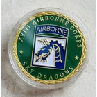 US ARMY XVIII AIRBORNE CORPS Sky Dragons Challenge Coin. This is a great looking US ARMY XVIII AIRBORNE CORPS "Sky Dragons" commemorative challenge coin. Coin has reeded edges and is about 1 9/16" in diameter. All details are raised lettering and gold plated. Coin is contained in an acrylic air tight holder and displayed in an attractive black velvet presentation box which will make this a very impressive gift or presentation. The XVIII Airborne Corps is the corps of the United States Army designed for rapid deployment anywhere in the world. It is referred to as "America's Contingency Corps". Its headquarters are at Fort Bragg, North Carolina.