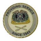US Air Force Providing Service Since 1943 Challenge Coin Features: Measures Approximately: 2 inch (51mm) Diameter Edging: Oblique Line Edging Shape: Round Challenge Coin Front: Providing Service Since 1943 Reverse: Presented By The Brigade Food Service Team